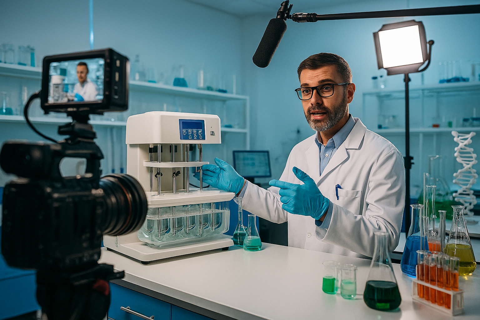 Abb.: "Labor im Studiolicht". Erstellt mit Copilot.