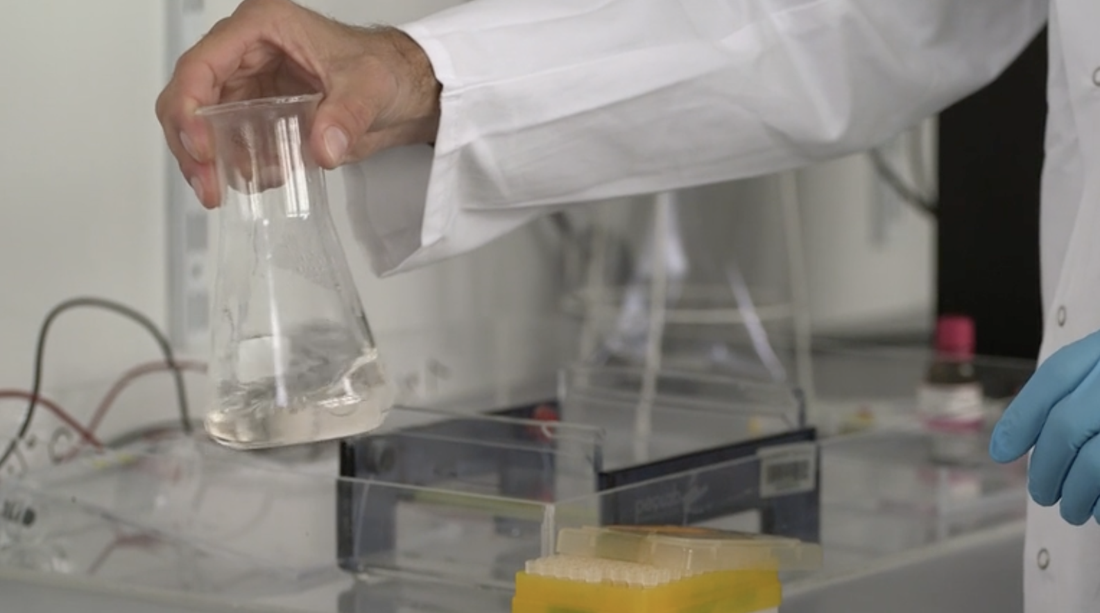 Abb.:. Tutorial zur Durchführung einer Agarose-Gelelektrophorese (Zieglmüller, CC-by-sa, Quelle: https://lecture2go.uni-hamburg.de/l2go/-/get/v/22517).