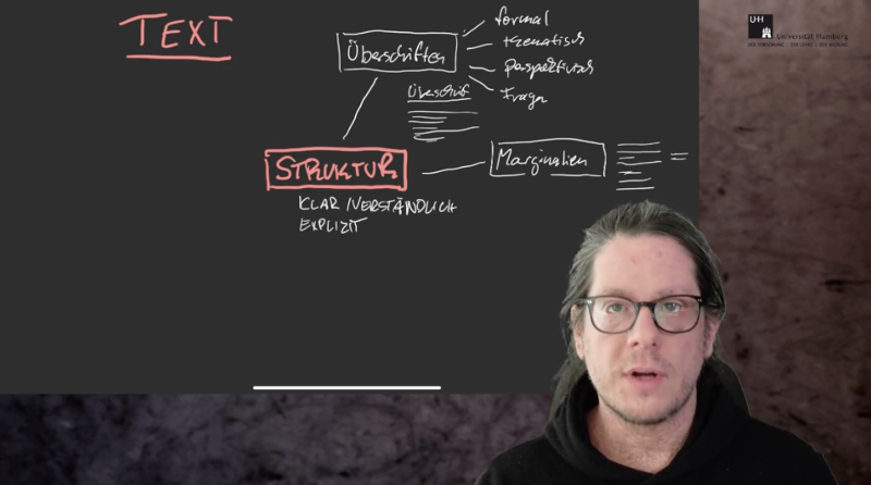 Zunächst sind hier ein paar Beispiele für Lehrvideos verlinkt. Sie zeigen zum einen die Bandbreite verschiedener Arten von Lehrvideos und vermitteln eine Auswahl an Gestaltungsmitteln, die für die Entwicklung von Lehrvideos genutzt werden können.