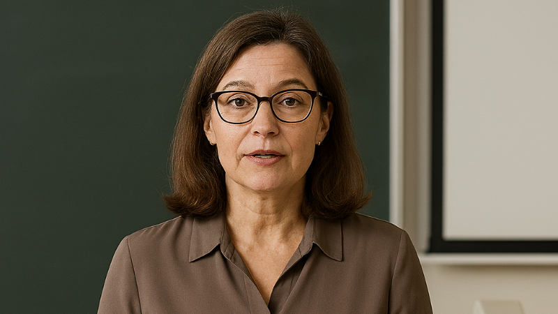 Abb.: Ein Vortrag wird häufig in der Naheinstellung als sogenannter 'Talking Head' aufgezeichnet. Erstellt mit Copilot.